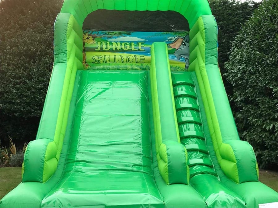 Perfect size for most back gardens but still big enough to stand out at an event, the inflated roof over the top adds extra protection for the users and gives the unit a more Eye-catching look, add that to the fully themed deluxe jungle artwork and you end up with a great looking inflatable slide that is perfect for all types of parties, events and fundays.