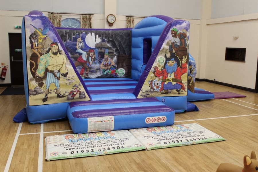 Pirate Themed Bouncy Castle With Side Slide For Hire in Virginia Water, Surrey and Surrounding Areas