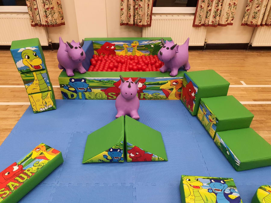 Dinosaur bouncy castle, softplay & ballpond package for hire.
