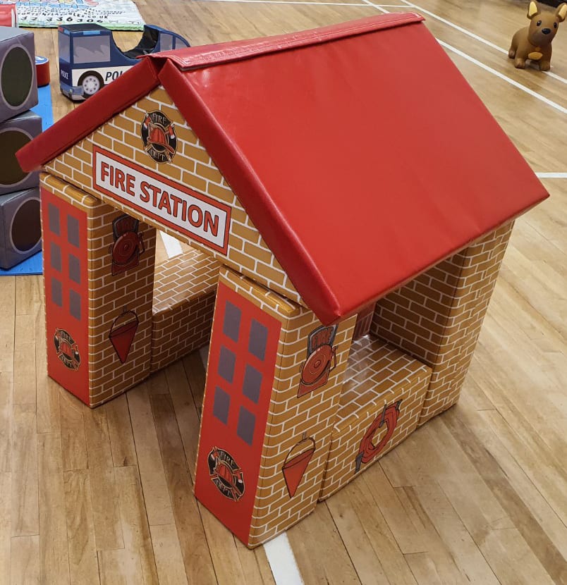 The 10 soft foam pieces are designed to be built together to create the fire station.