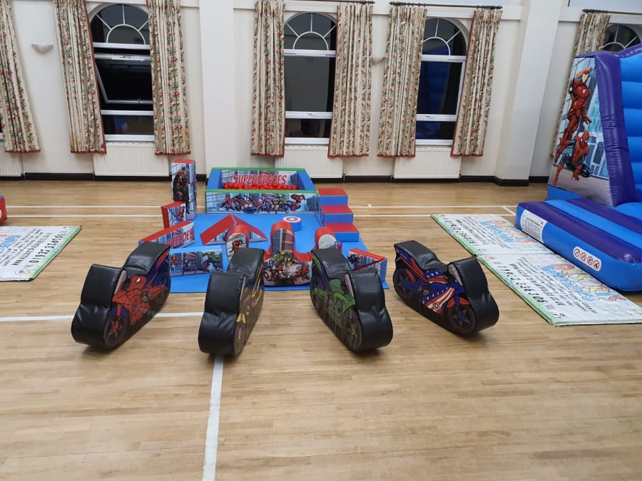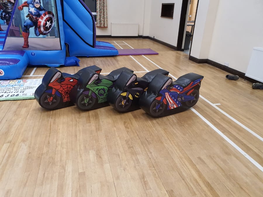 Soft Play 4 x Superhero Motorbike Rockers Add-On