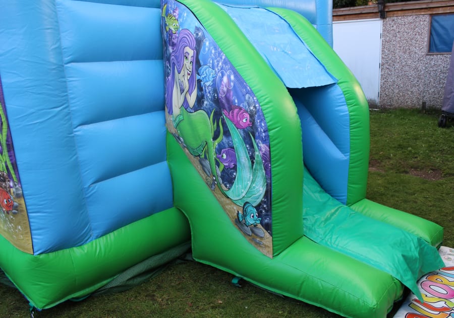 Mermaid Themed Bouncy Castle With Side Slide For Hire in Surrey and Surrounding Areas