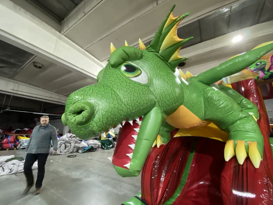 A bespoke and truly amazing dragon themed bouncy castle with slide