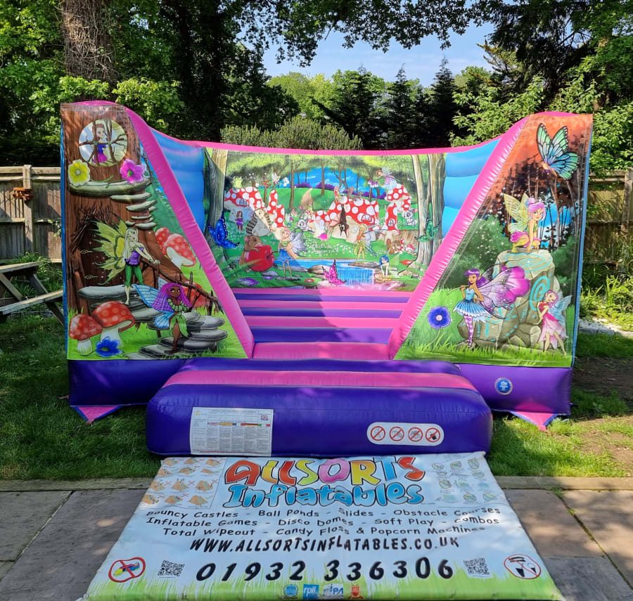 Magical fairy themed bouncy castle available for hire in Surrey and surrounding areas, your little ones will go wild with magical excitement.