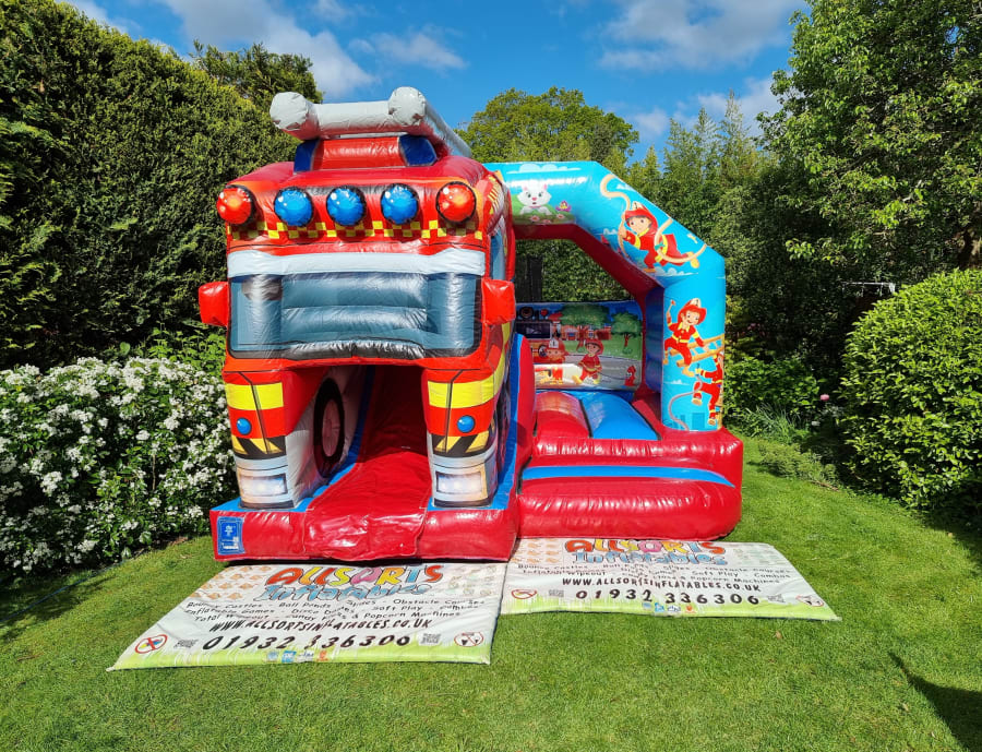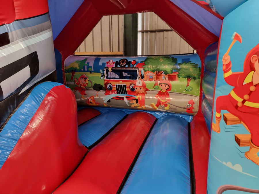 Awesome fireman themed bouncy castle with slide now available to hire and the first of its kind in the UK