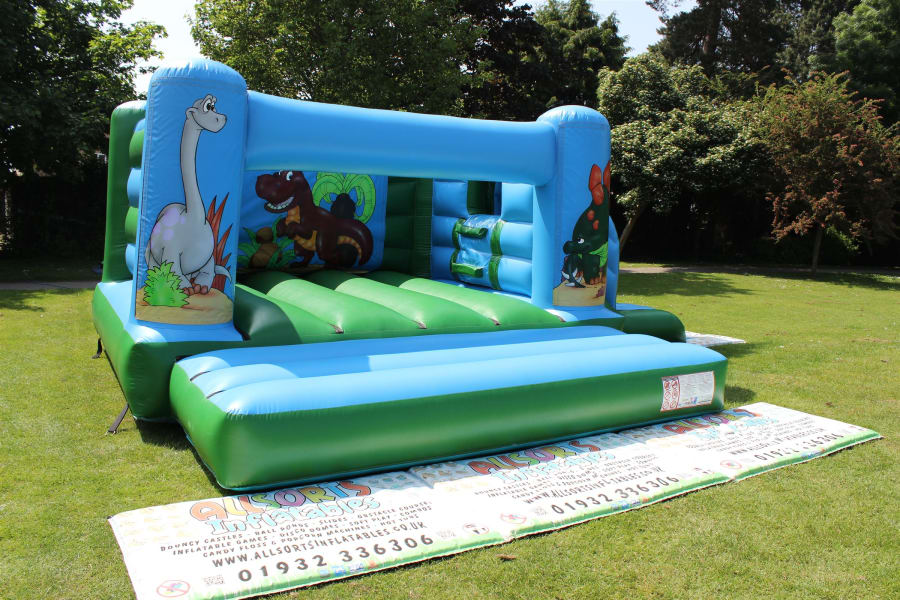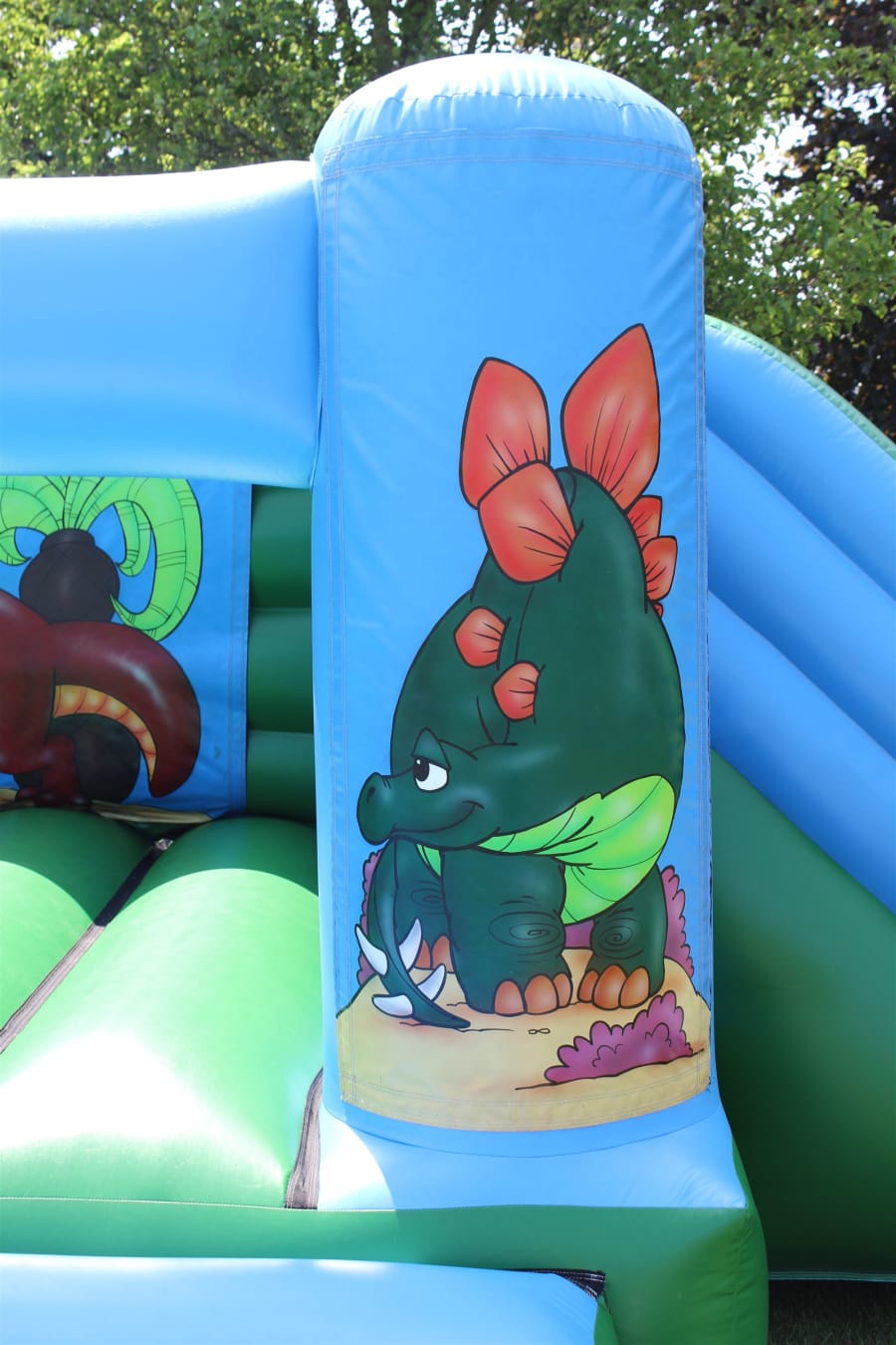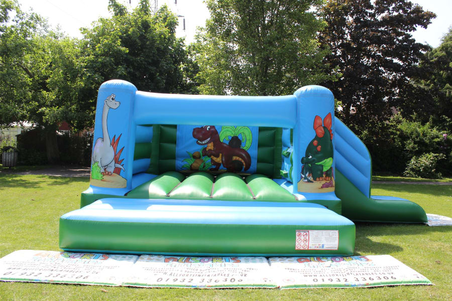 Dinosaur Bouncy castle with side slide for hire in Surrey and Surrounding areas