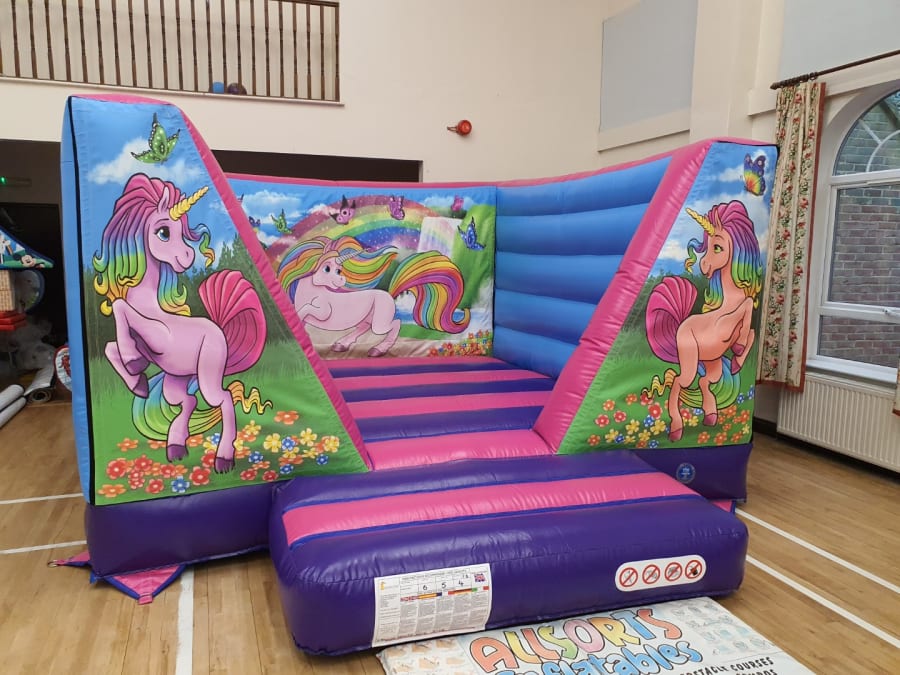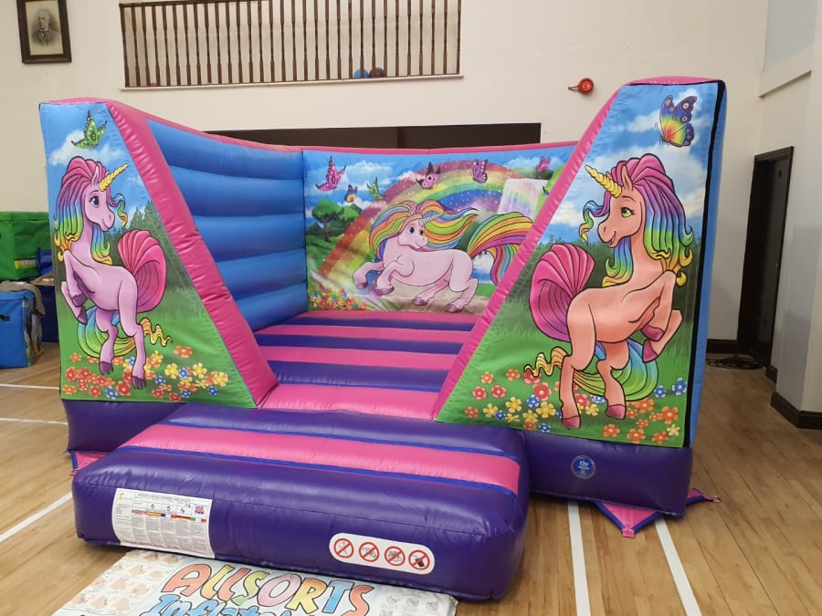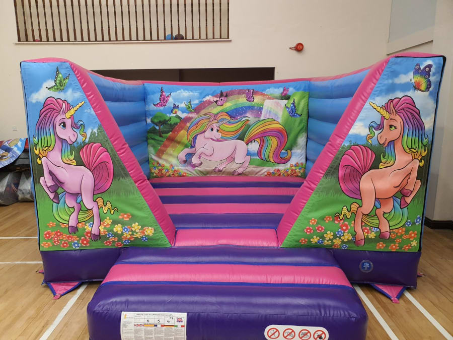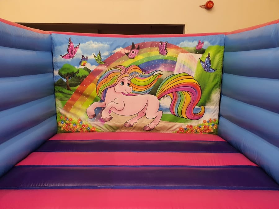 Unicorn themed bouncy castle with Beautiful artwork, low height walls and a good size bouncing area, this is the perfect bouncy castle for all unicorn themed parties.