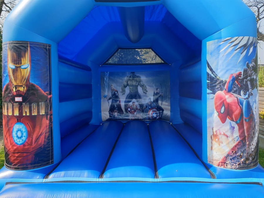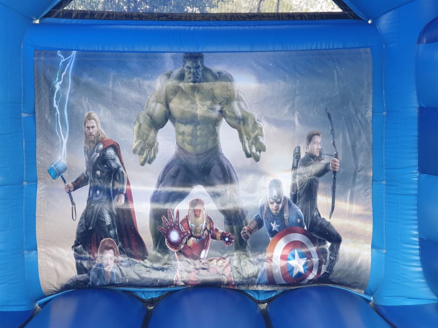 This bouncy castle features all their favourite superheroes all sheltered under the fitted raincover.