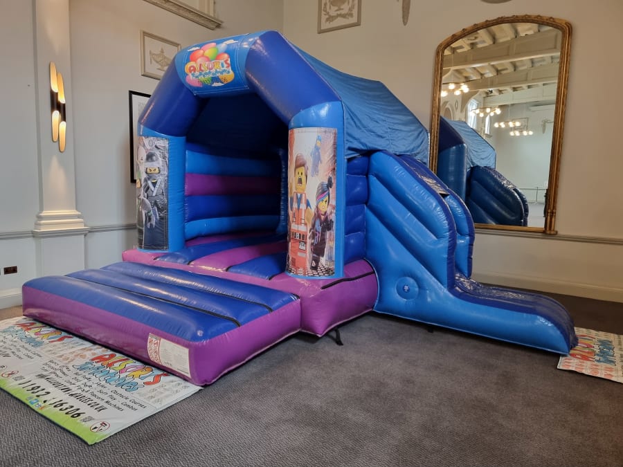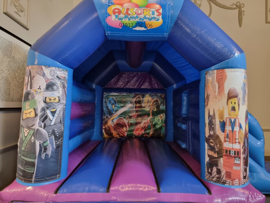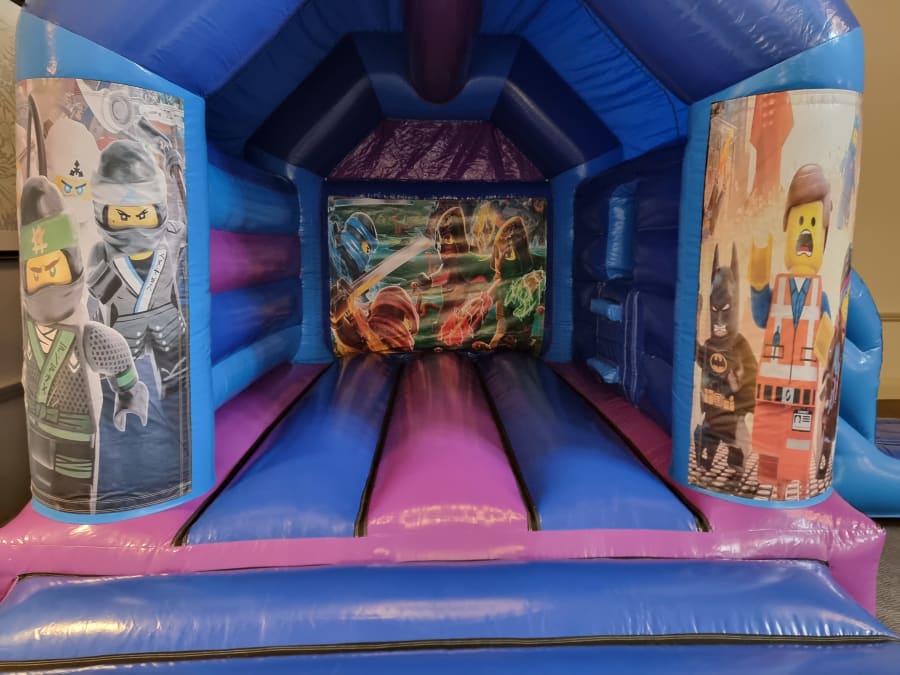 for all the Ninja fans out there we bring you our New Ninja blocks themed Bouncy castle with side slide combo.