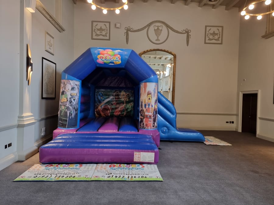 Ninja blocks bouncy castle with side slide for hire in Surrey.