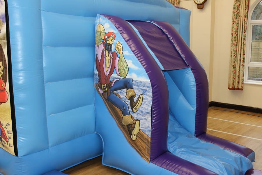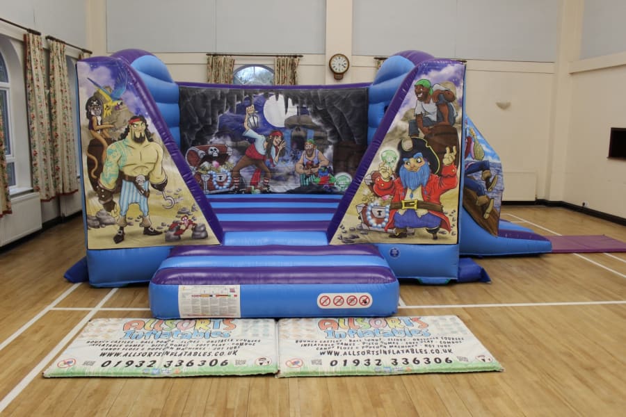 Pirate Themed Bouncy Castle With Side Slide For Hire in Virginia Water, Surrey and Surrounding Areas