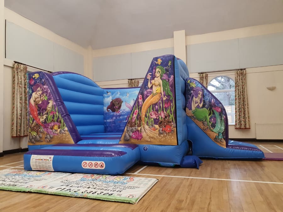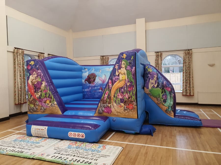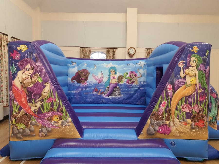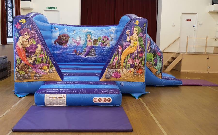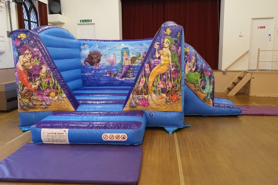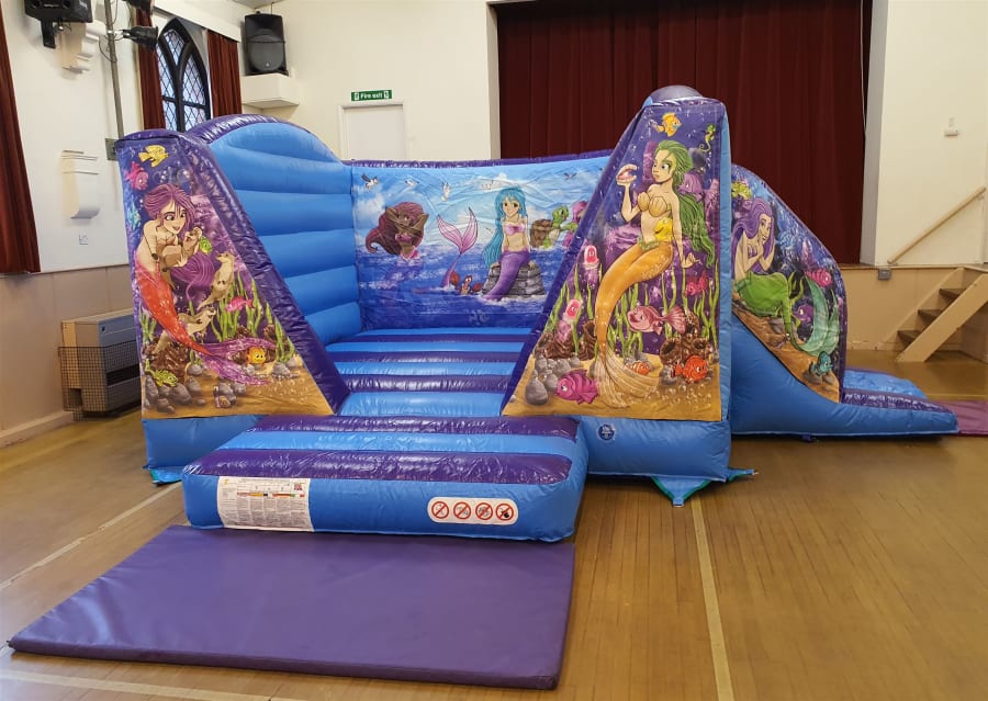Mermaid Themed Bouncy Castle With Side Slide For Hire in Surrey and Surrounding Areas