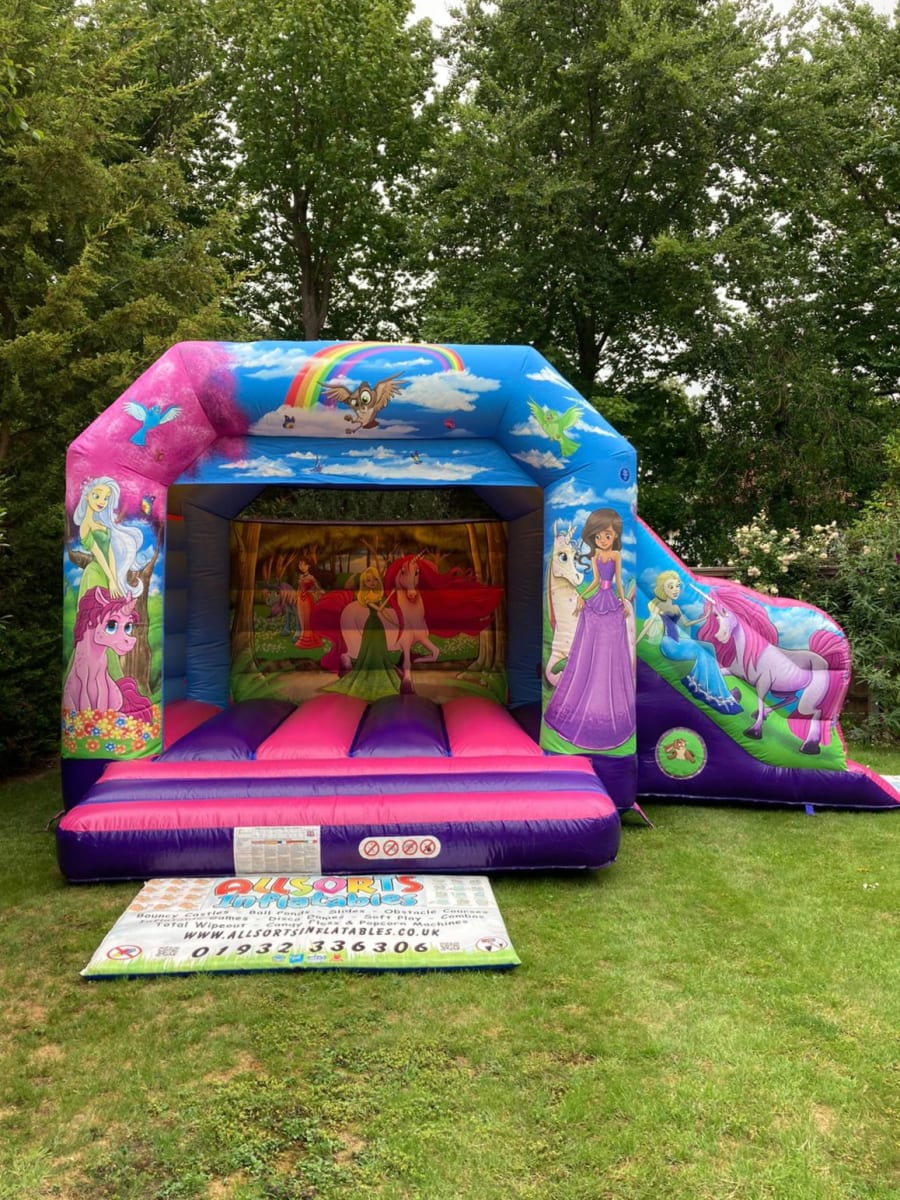 Unicorn Princess Bouncy Castle With Slide For Hire In Woking, Surrey & Surrounding Areas