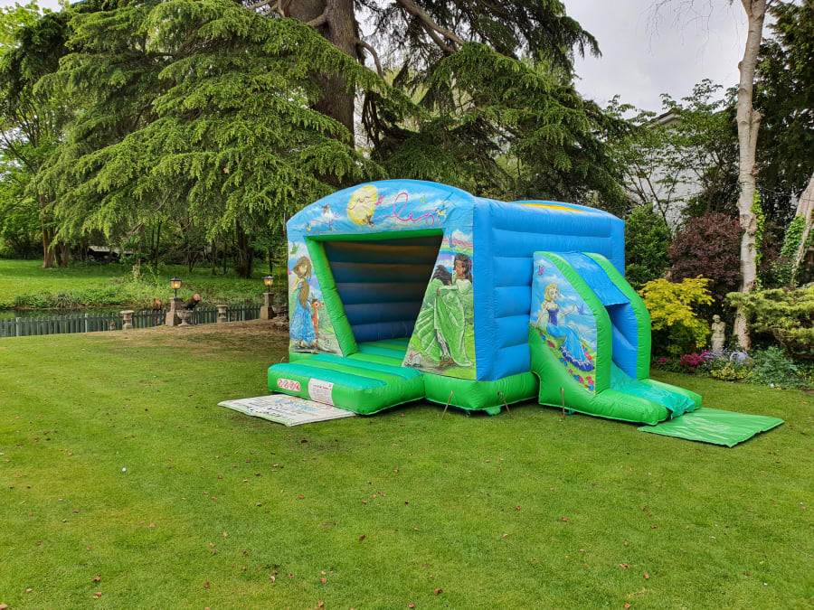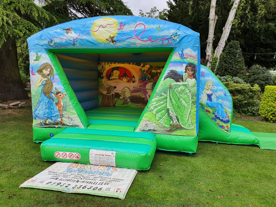 New for 2021 is our stunning princess bouncy castle with side slide combo, featuring some of the prettiest artwork that we have seen and all contained under a fitted rain cover for that extra peace of mind and protection from the typical English weather.