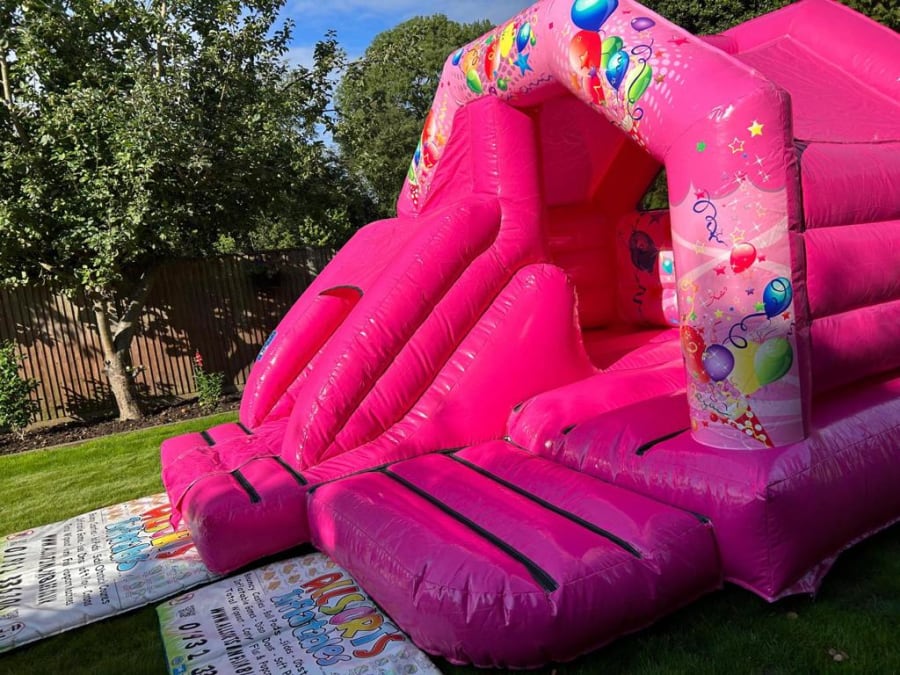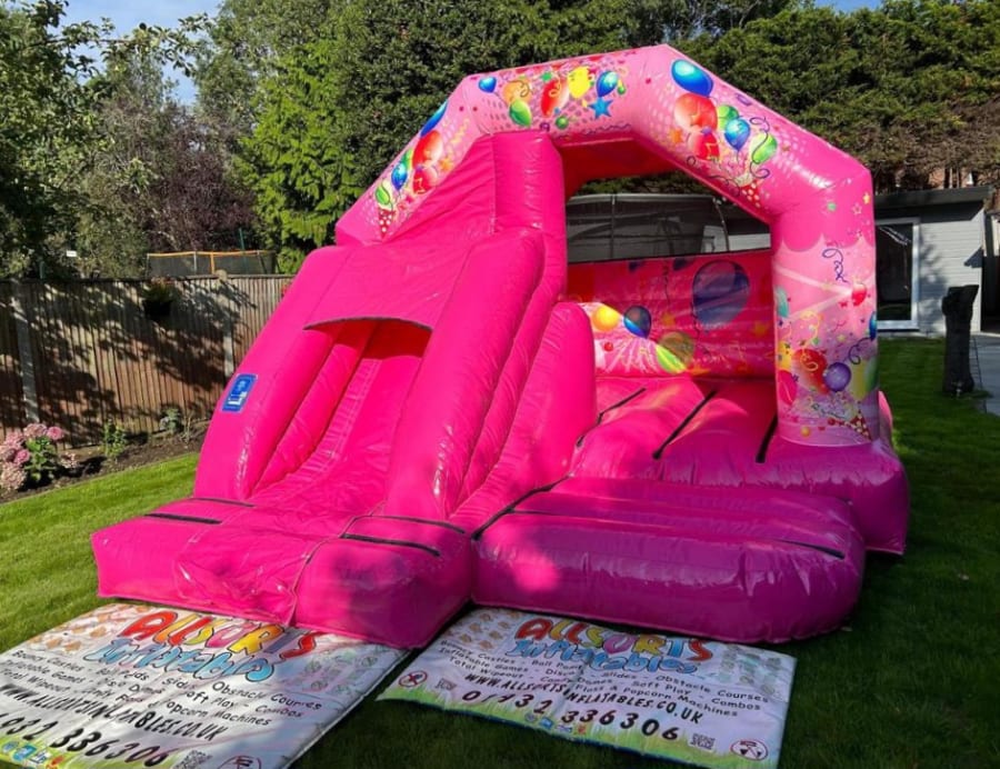Pink Partytime Castle Slide Combo for hire in Surrey