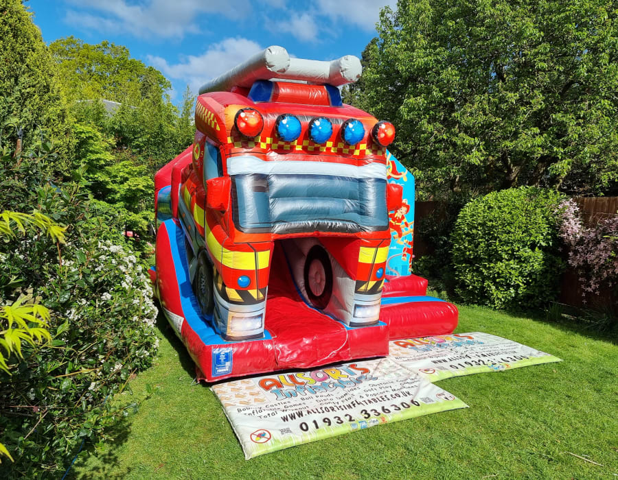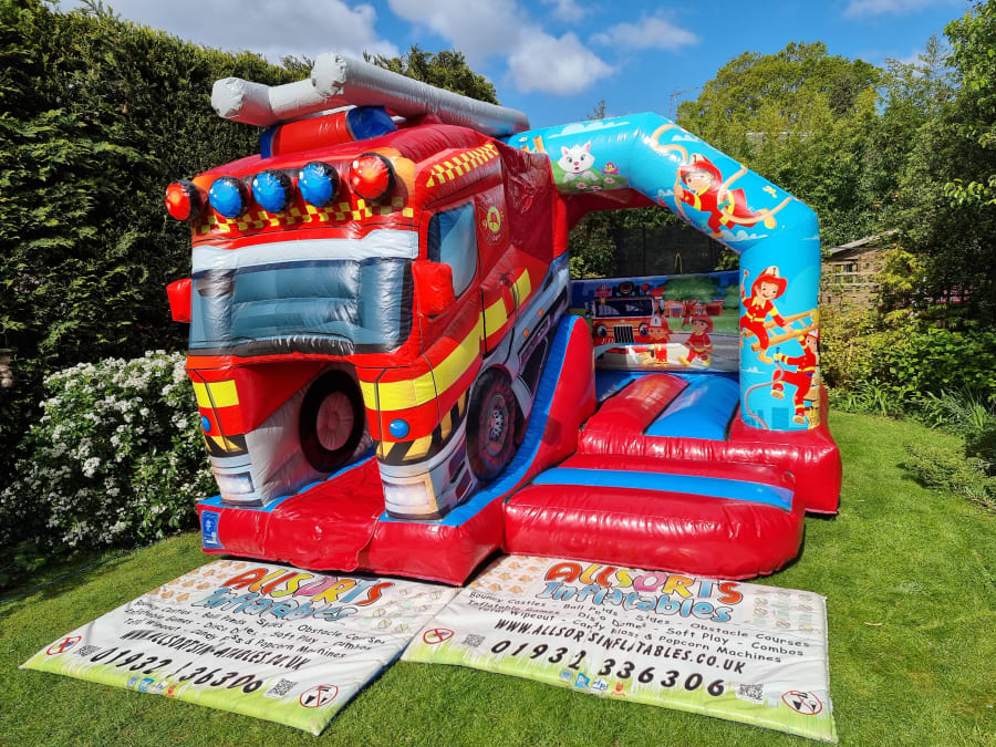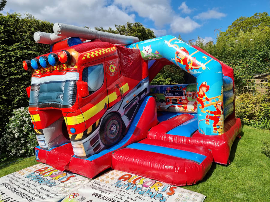 Awesome fireman themed bouncy castle with slide now available to hire and the first of its kind in the UK