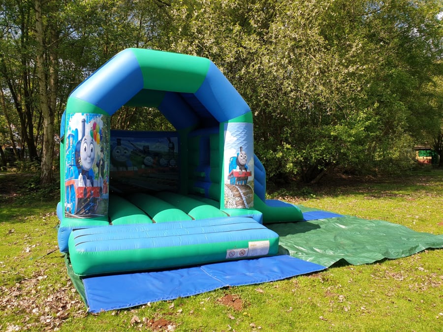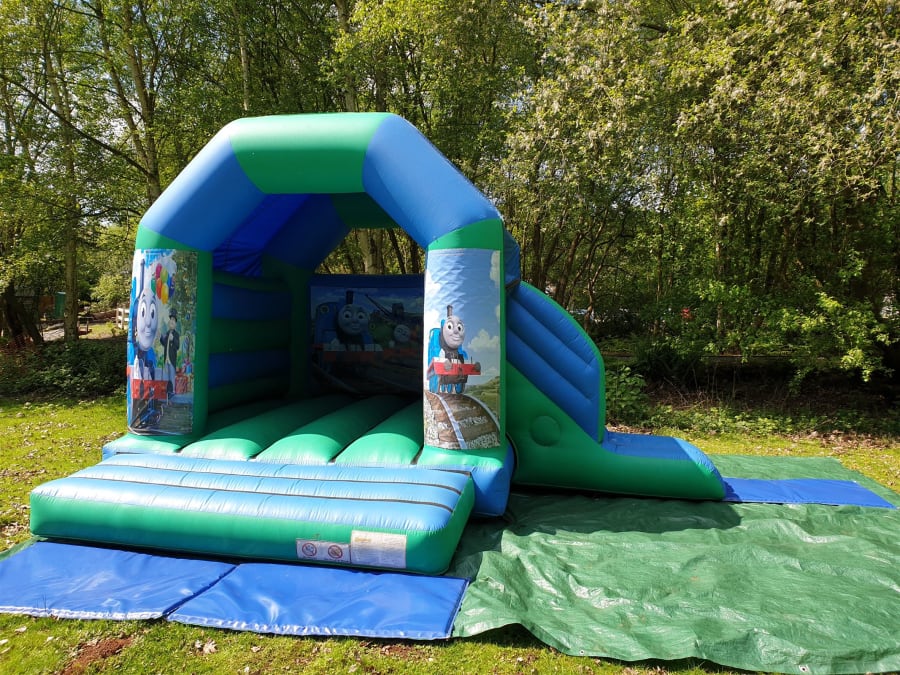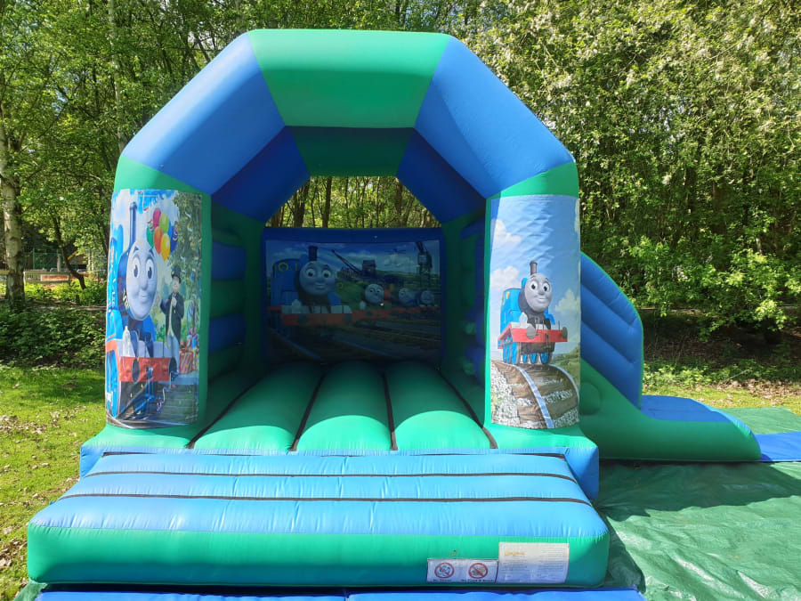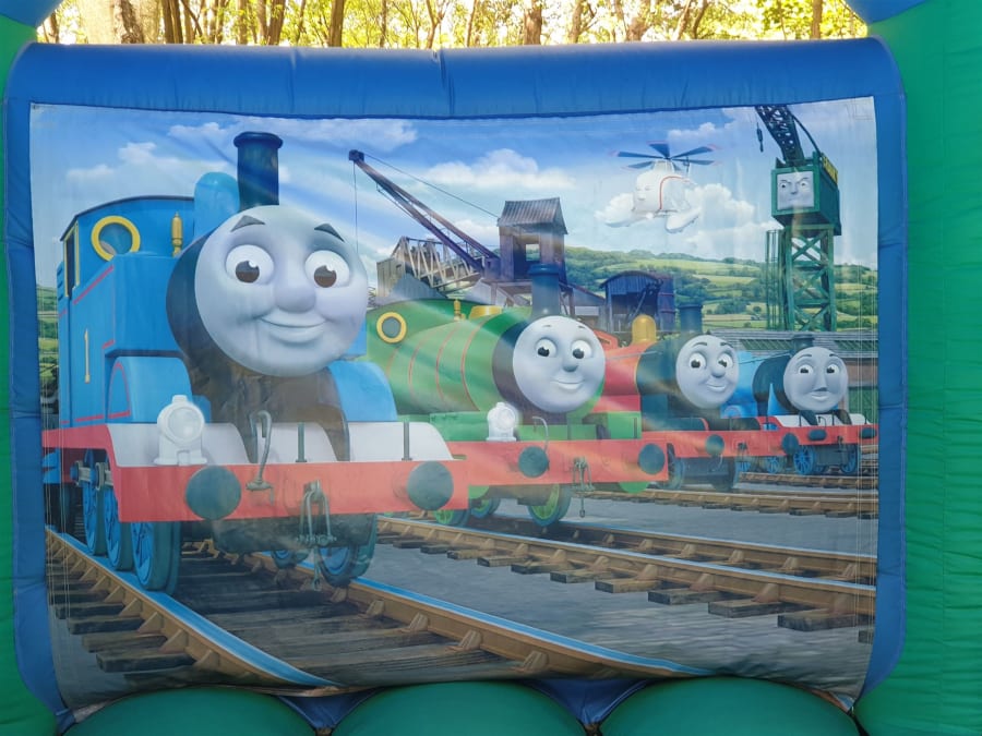 Thomas the train bouncy castle with side slide combo available for hire in Surrey