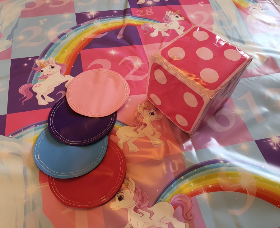 Giant Unicorn themed Snakes & Ladders for hire in Surrey