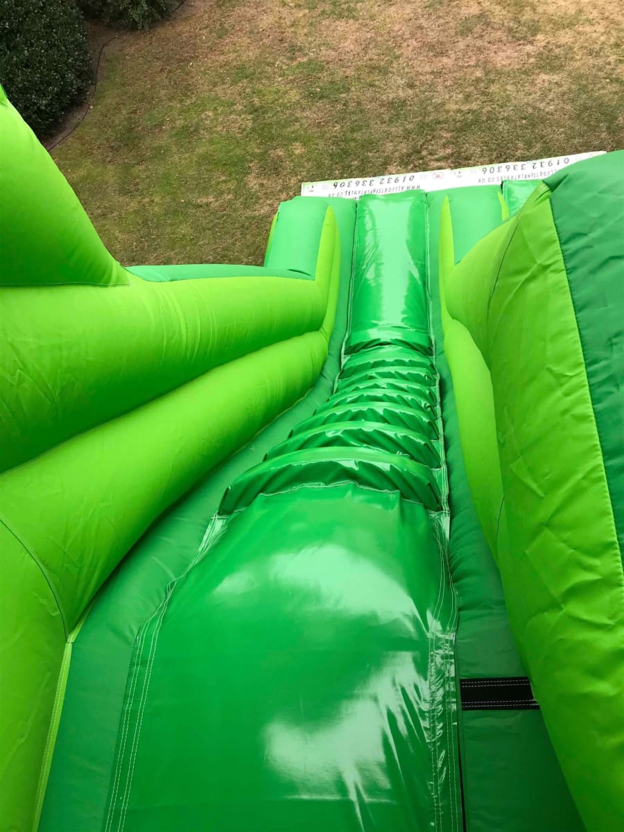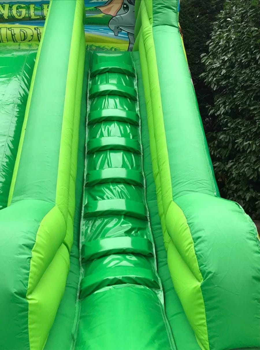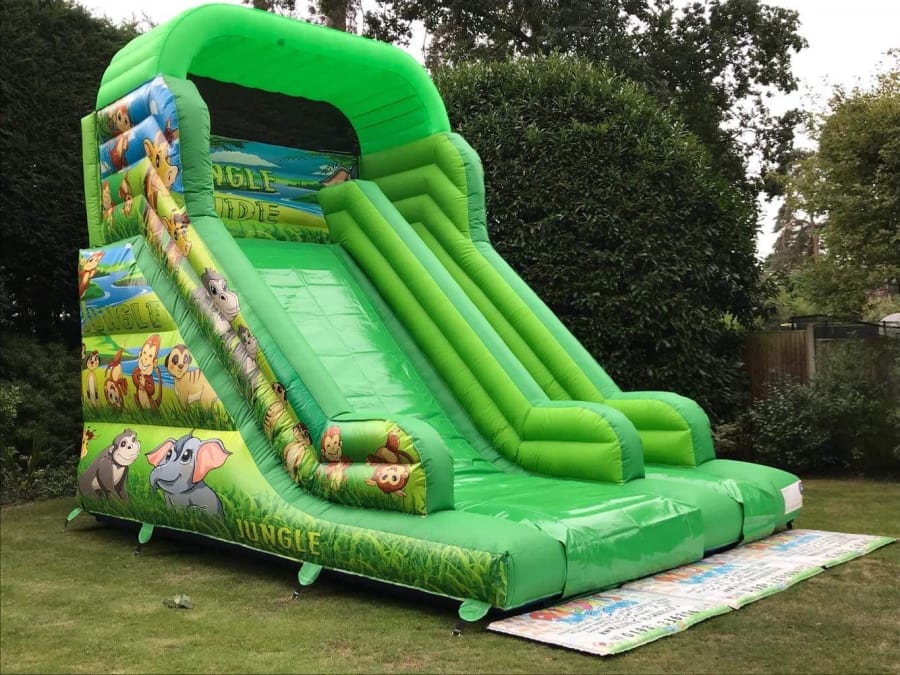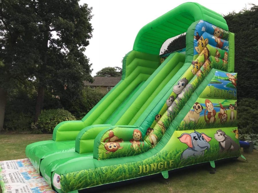 Perfect size for most back gardens but still big enough to stand out at an event, the inflated roof over the top adds extra protection for the users and gives the unit a more Eye-catching look, add that to the fully themed deluxe jungle artwork and you end up with a great looking inflatable slide that is perfect for all types of parties, events and fundays.