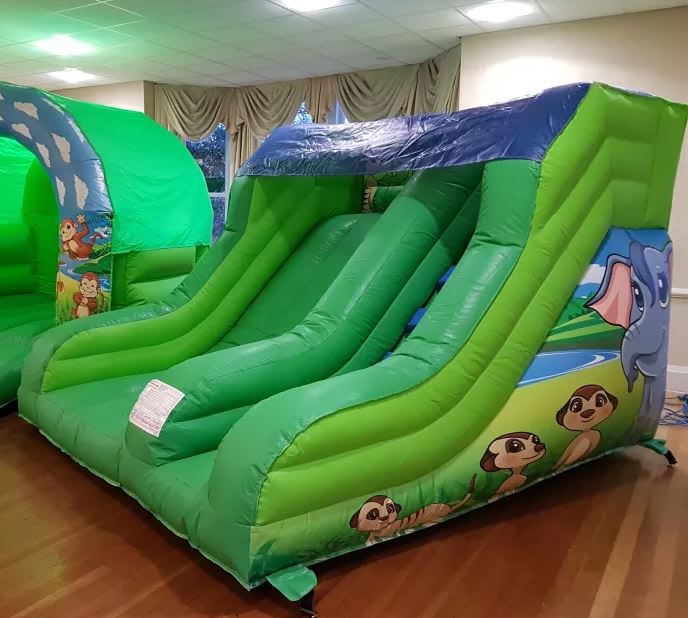 This 5ft platform inflatable slide is perfect for parties or events for smaller children, beautiful jungle theme which compliments the rest of our Jungle theme range of soft play and inflatables.