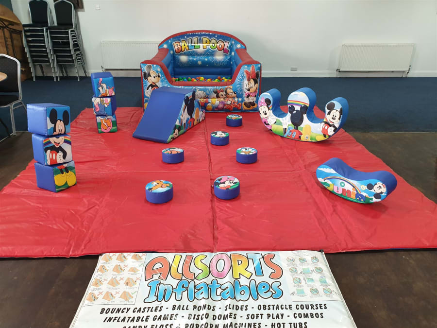 This soft play package includes our 6ft x 6ft inflatable ball pool with 1000 balls plus a soft play mat for the pieces to be used on,