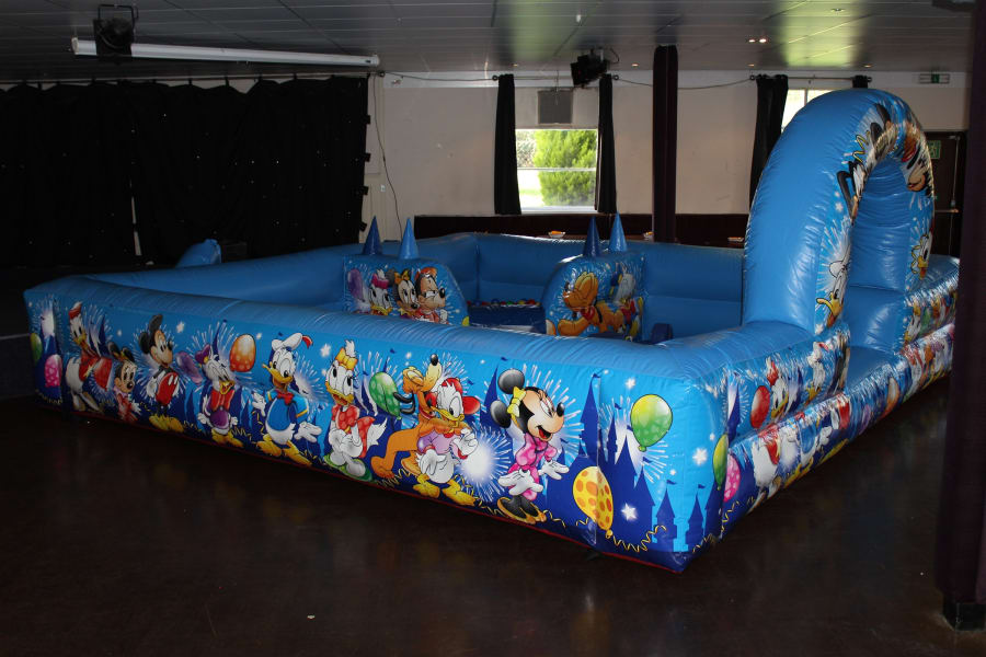 Bouncy castle hire Surrey brings you our inflatable soft play enclosure with built in ball pit and Interactive air jugglers on the side, the air jugglers are little cones that have a flow of air coming from the top that allows the soft play balls to magically float, the challenge is to then get the ball to move from one cone to the next and so on.