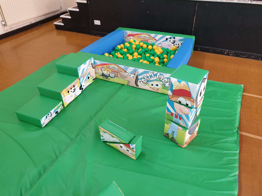 Crazy Farm Soft Play set with ball pond for hire in Surrey
