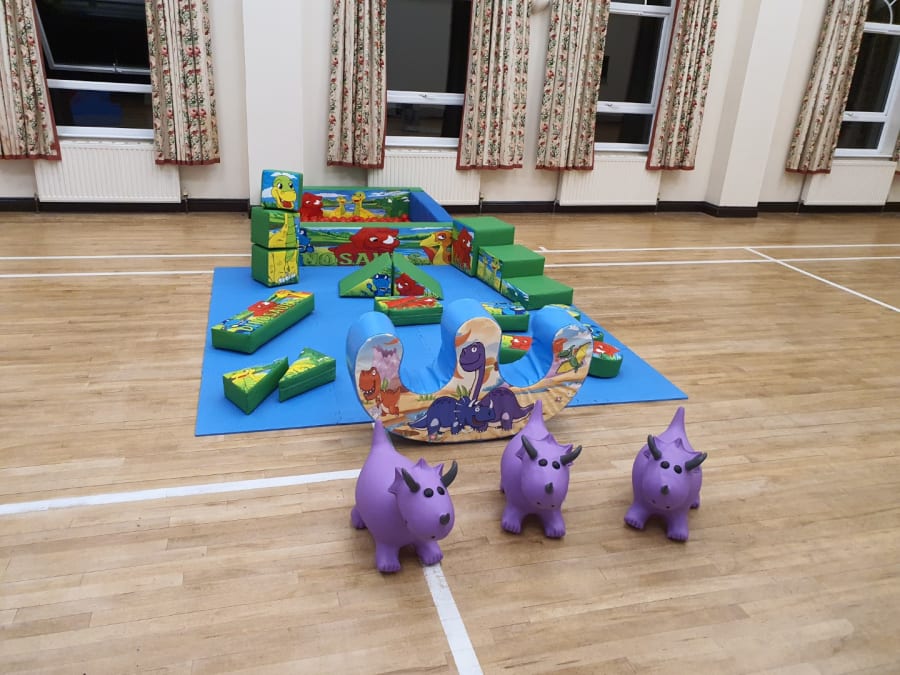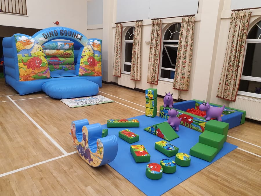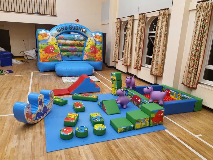 Dinosaur bouncy castle, softplay & ballpond package for hire.