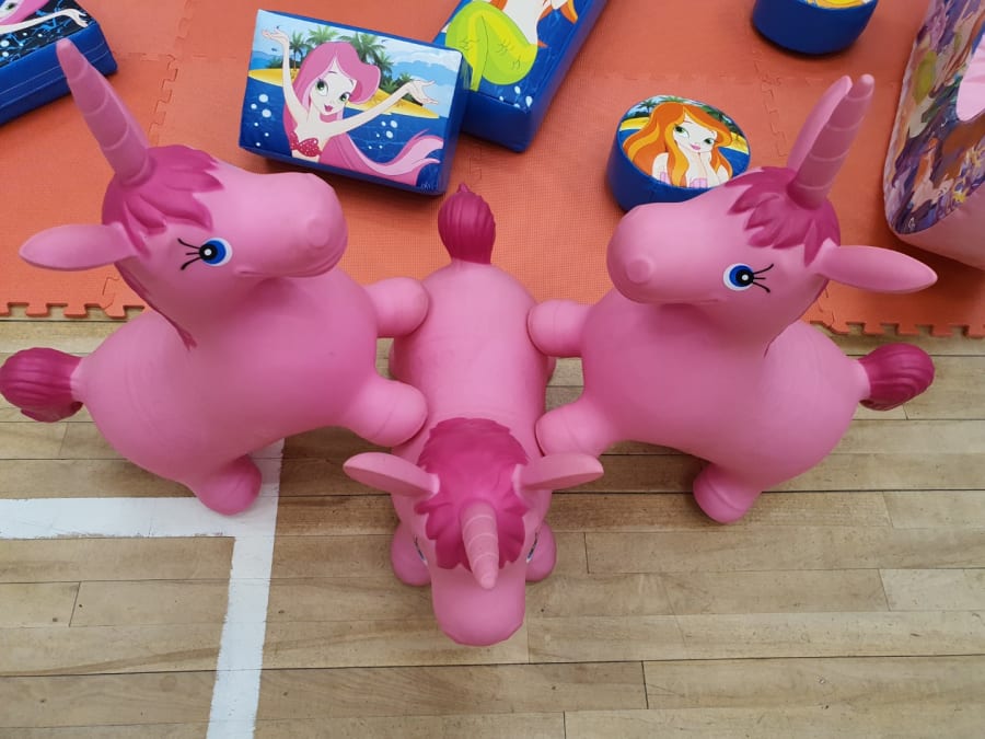 3 x Ride on bouncy unicorn hoppers